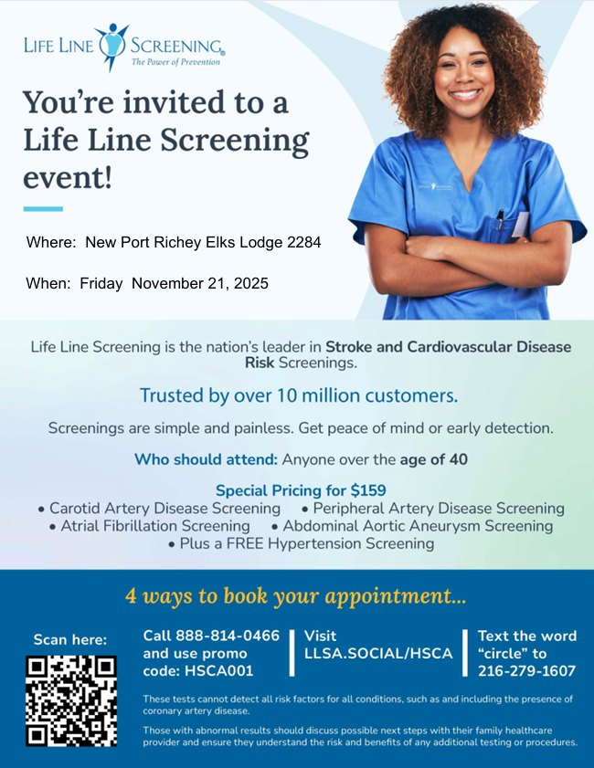 This website is operated and maintained by Benevolent and Protective Order of Elks, New Port Richey Lodge 2284 Inc. as a 501(c)8 with the IRS and is governed by its Terms of Service and Privacy Policy.